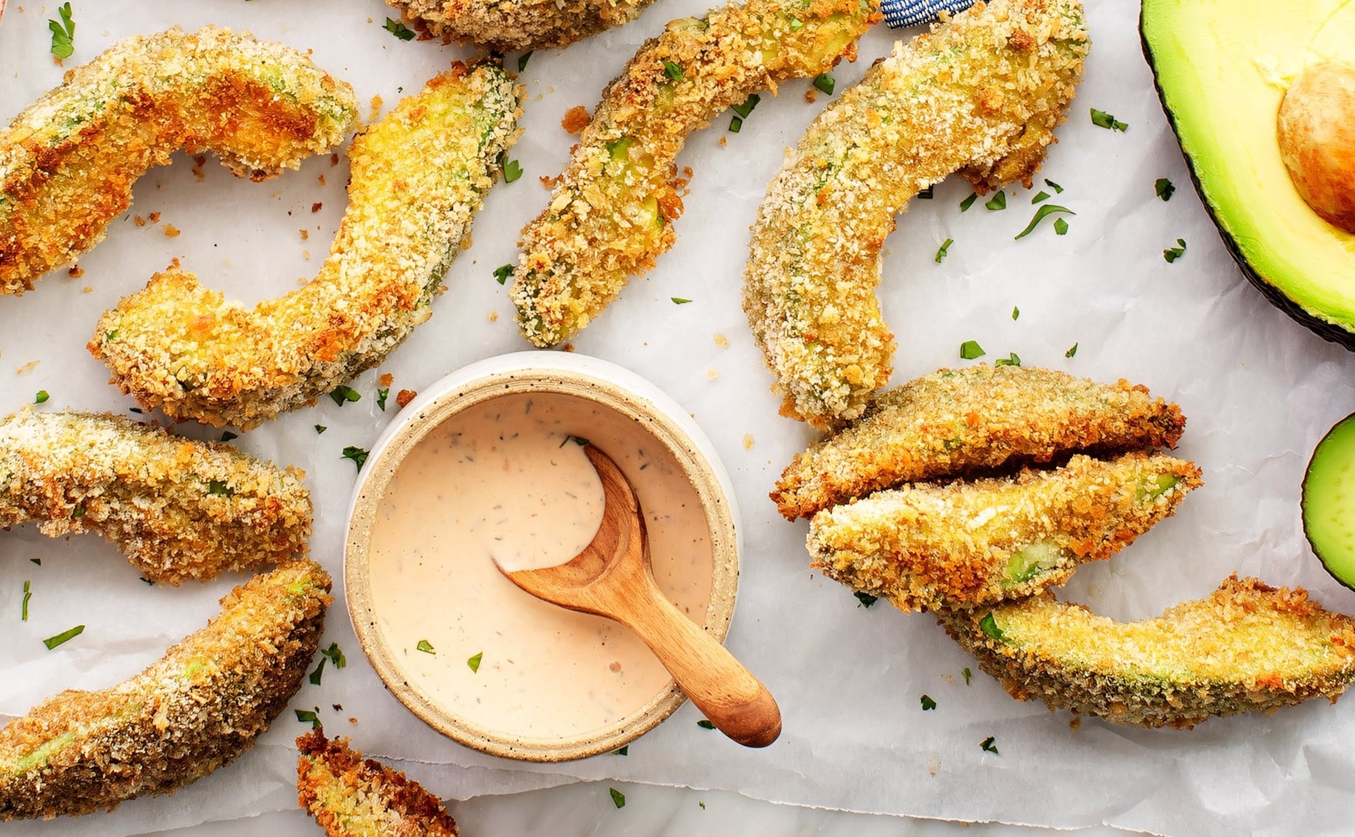 - Gently slice avocados into 1/4-inch slices for the ideal fries-like shape.