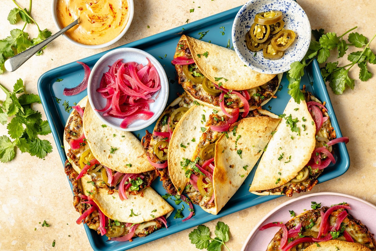 - Add a kick of heat: like spice? Use a medium (or hot!) salsa in the filling mixture, and/or stuff regular or pickled jalapeños into the tacos.