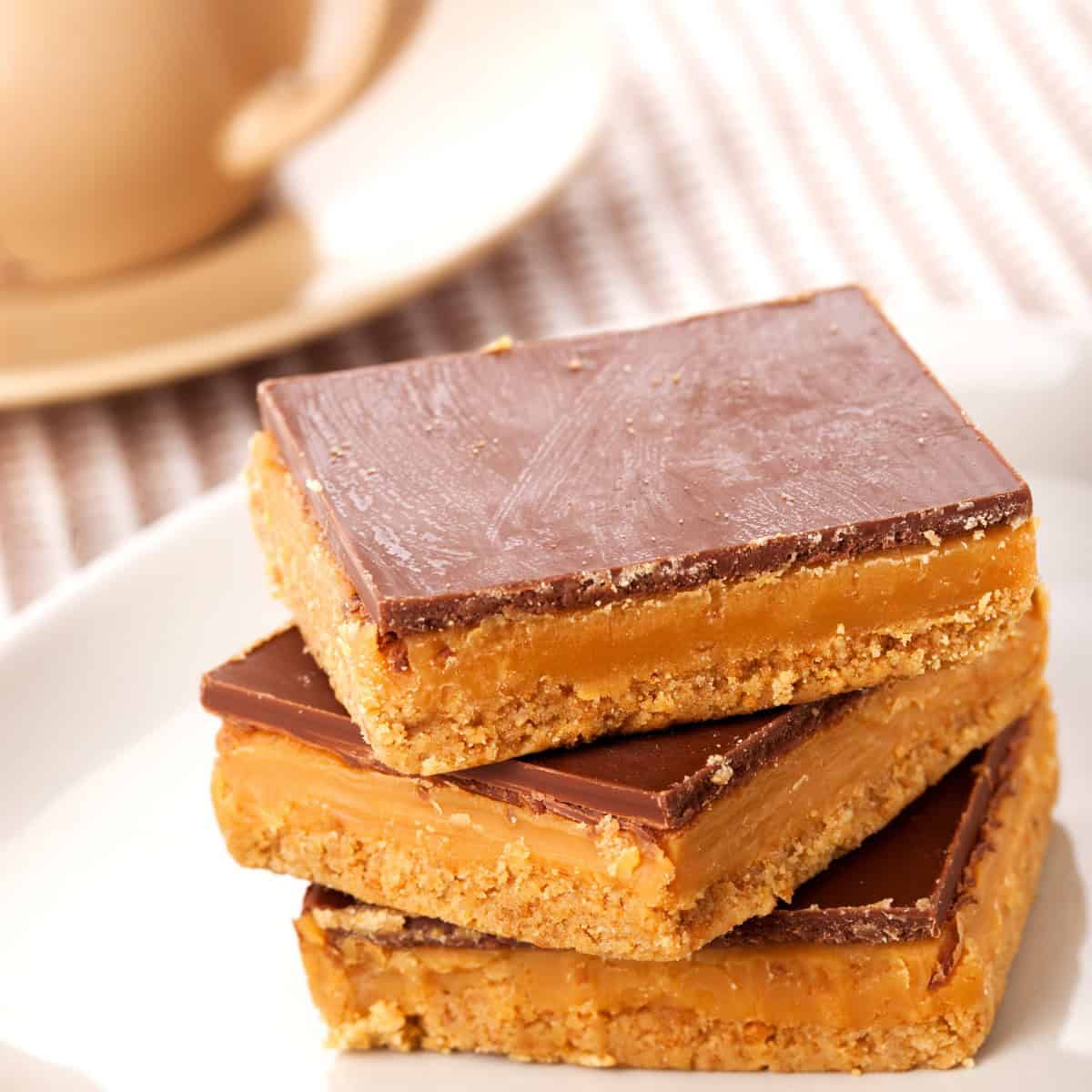- Salt– Just a pinch balances all the sweetness and enhances every flavor, making the shortbread, caramel, and chocolate taste even better.